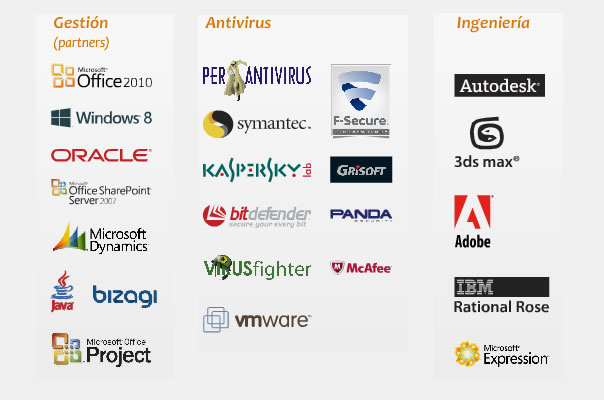 Ofrecemos productos de software de las principales marcas del mercado como: